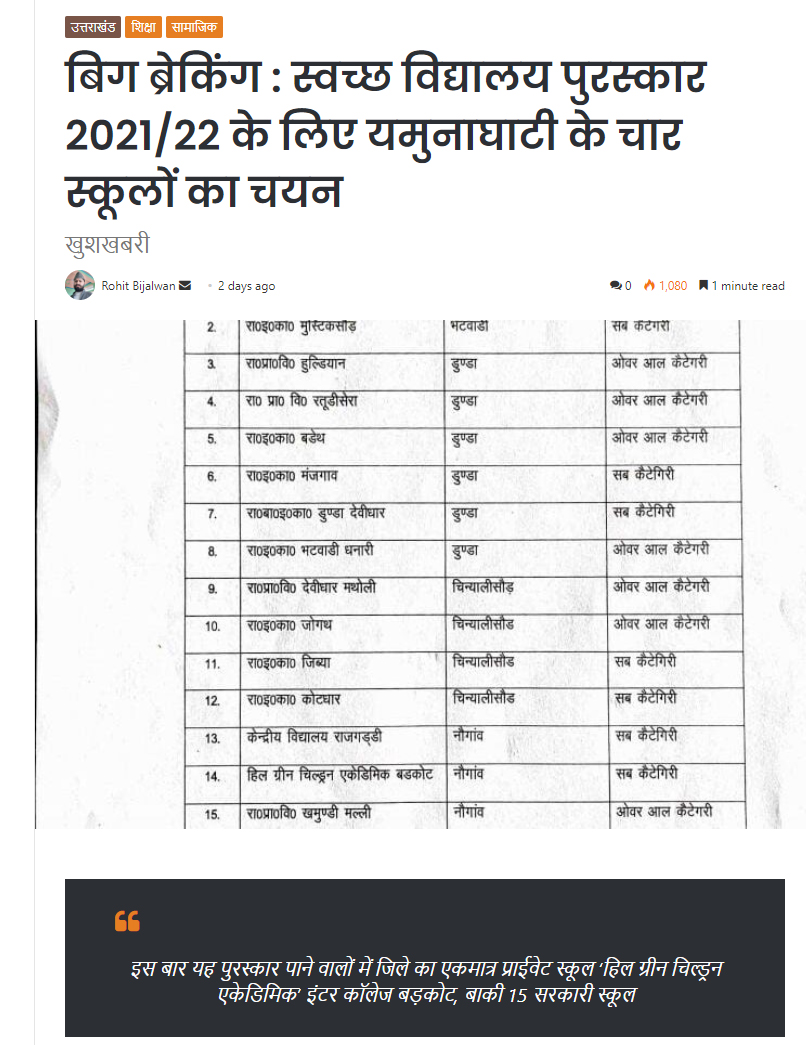 Our school, Hill Green Childrens Academy located at Nagar Panchayat Barkot Near Old BTC has been functioning over the years as is the only prominent center of education in our area.